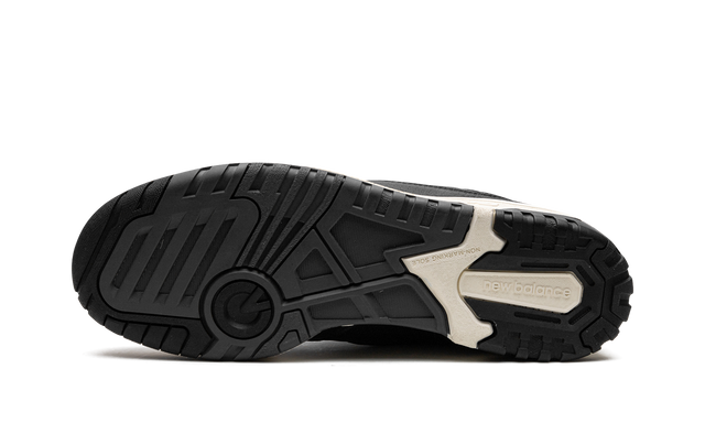 The upper of the New Balance 550 Panda is made of high-quality leather and suede, providing durability and comfort during use. The contrast between black and white is evident, with the New Balance logo and the Swoosh appearing in a shade of white, which highlights the minimalist design of the sneaker.