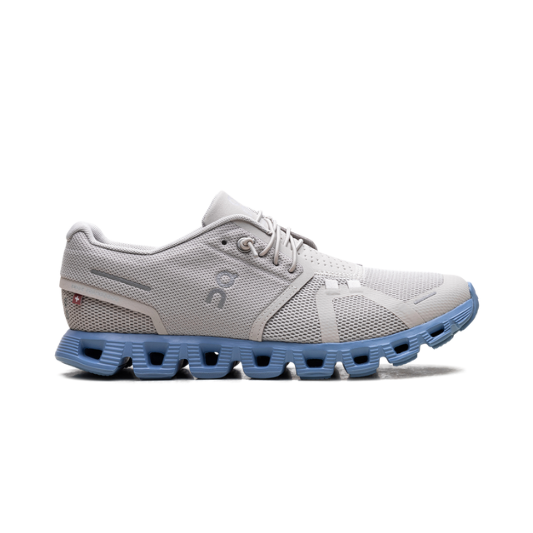 The Cloud 5's upper is made with breathable and lightweight mesh, offering the ideal combination of comfort and ventilation. Its "Pearl Neptune" shade mixes a soft blue with touches of gray and details in metallic tones, ensuring a sophisticated and contemporary look. Lace closure allows for a personalized fit, keeping the foot safe and secure during physical activity.